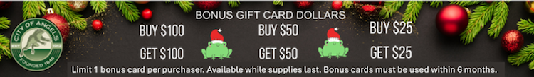 The Angels Camp Hop n' Shop with Frog Bucks program has many of your favorite retailers, restaurants, services and entertainment in one place. Use the Frog Bucks gift card at all participating locations in the city — there is truly something for everyone!