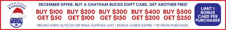 Apply to be part of our local network that accepts Chatham Bucks and allow customers the convenience of shopping, eating and playing in our beautiful region. Increase visibility to your business and expand your customer base.