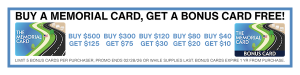 Select the value of your Memorial Card. Choose your recipient (personal or professional contacts) and the digital card will be delivered via email. Once the card is delivered to the recipient, it can be presented at any of the enrolled Memorial Businesses